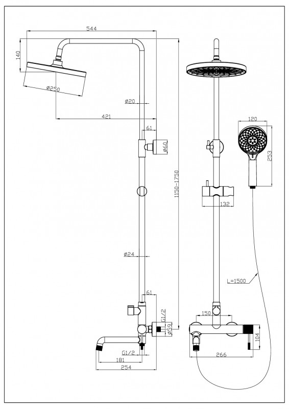 • Душевые системы внешнего монтажа